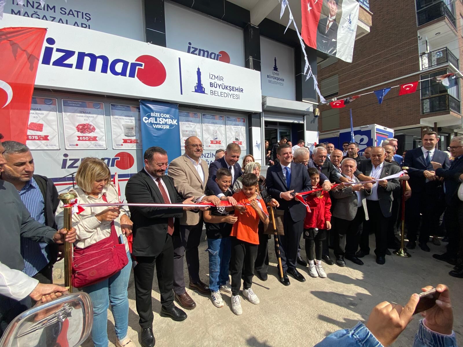 Son Mühür/ Emine Kulak- İzmir Büyükşehir Belediye Başkanı Dr. Cemil Tugay’ın İzmirlileri enflasyona karşı korumak ve güvenli alışverişle buluşturmak amacıyla hizmete açtığı tanzim satış mağazaları İZMAR, 12’inci şubesini Torbalı’da hizmete açtı. İzmir Büyükşehir Belediyesi’nin iştiraki İZTARIM AŞ tarafından hızla kent geneline yayılan İZMAR’ın yeni mağazası, Torbalı Fevzi Çakmak Mahallesinde İzmirli ile buluştu. Mağazanın açılış törenine İzmir Büyükşehir Belediye Başkanı Dr. Cemil Tugay, Torbalı Belediye Başkanı Övünç Demir, CHP Torbalı İlçe Başkanı İbrahim Özel, İzmir Büyükşehir Belediyesi bürokratları, meclis üyeleri, muhtarlar ve çok sayıda Torbalılı katıldı.