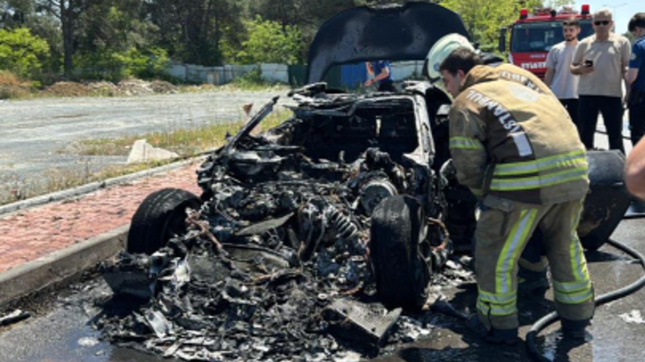 Görgü tanıklarının iddiasına göre, yaklaşık 20 milyon TL değerindeki otomobilin motor kısmından çıkan dumanı fark eden sürücü, aracı yol kenarına çekti. Kendi imkanlarıyla yangın tüpüyle müdahalede bulunan sürücü, alevleri söndürmeyi başaramadı. Kısa süre sonra araçta patlama meydana geldi.