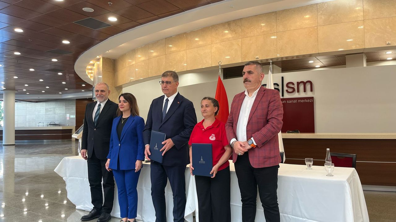 Bugün Ahmed Adnan Saygun Sanat Merkezi'nde TİS töreni gerçekleştirildi. Törene İzmir Büyükşehir Belediye Başkanı Cemil Tugay'ın yanı sıra CHP Genel Başkan Yardımcısı Gamze Taşcıer de katılım sağladı.