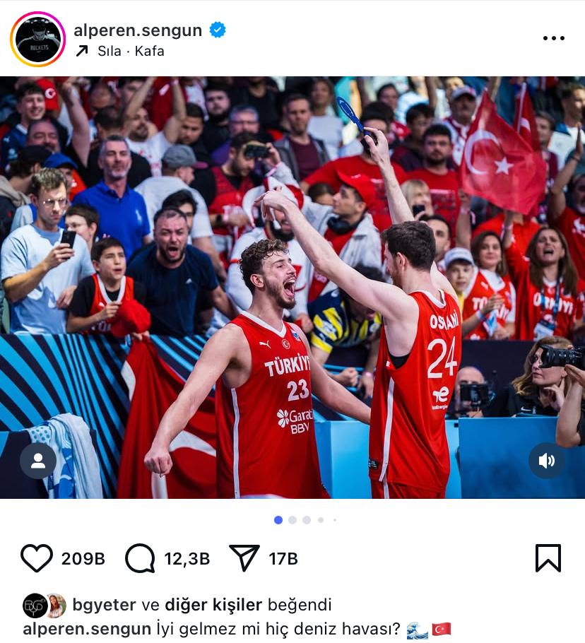 Müsabakada etkili performansıyla öne çıkan A Milli Takım’ın yıldız isimlerinden Alperen Şengün, karşılaşmanın ardından sosyal medyadan yaptığı paylaşım ile gündem oldu. “İyi gelmez mi hiç deniz havası?” ifadelerini kullanan Şengün’ün sözleri, doğrudan Yunanistan’a gönderme olarak yorumlandı. Paylaşım kısa sürede binlerce yorum aldı ve saatler içinde yüz binlerce beğeniye ulaştı.