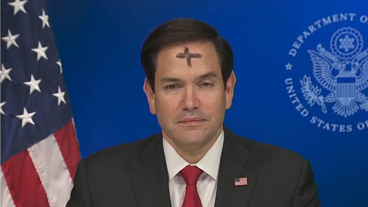 Dün ABD'de, başta Katolikler olmak üzere bazı Hristiyan topluluklarının kutsal günlerinden biri olan Kül Çarşambası nedeniyle, federal devlet çalışanları da dahil olmak üzere birçok Amerikalı, inançlarını simgeleyen haç işaretiyle iş yerlerine gitti. Katolik inancıyla yetişen Dışişleri Bakanı Marco Rubio da, Kül Çarşambası’nı kutladığını gösteren bir sembol olarak alnına çizilmiş büyük bir haç işaretiyle bir haber kanalına canlı bağlanarak açıklamalarda bulundu.
