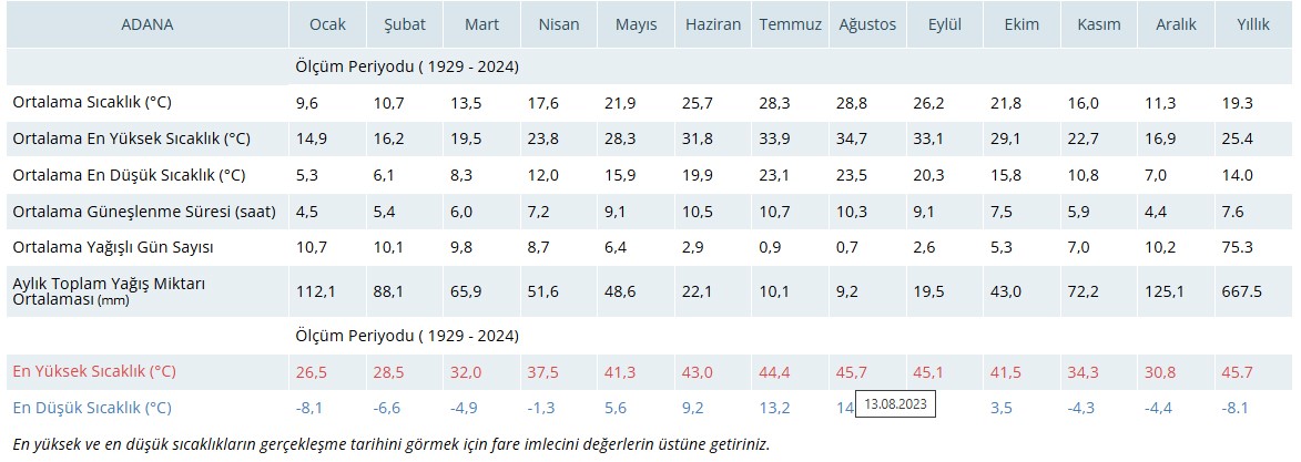 Meteoroloji uzmanlarının aktardığına göre, Adana'da en son sıcaklık rekoru 13 Ağustos 2023 tarihinde 45,7 dereceyle kırılmıştı. Ancak 9 Ağustos 2025 günü ölçülen 46,7 derecelik sıcaklık, bu rekoru geride bırakarak yeni bir zirveye ulaştı.