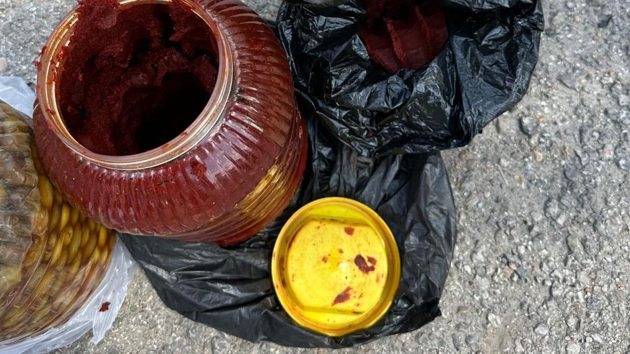 Edinilen bilgilere göre, kente yasaklı madde getirileceği yönünde bilgi alan İl Emniyet Müdürlüğüne bağlı Narkotik Suçlarla Mücadele Şube Müdürlüğü ekipleri söz konusu aracı Afyonkarahisar-Kon karayolu üzerinde oluşturdukları uygulama noktasında durdurdu. Aracı didik didik arayan ekipler mandalina kasasında bulunan salça kavanozundan şüphelenerek kavanozu bir şiş yardımıyla kontrol etti. Yapılan incelemede kavanozun ortasında farklı bir madde olduğunu belirleyen ekipler ardından kavanozun içerisindeki salçayı boşalttı. Ekipler daha sonra kavanoza poşete sarılmış halde zulalanmış yasaklı maddeyi ele geçirdi.