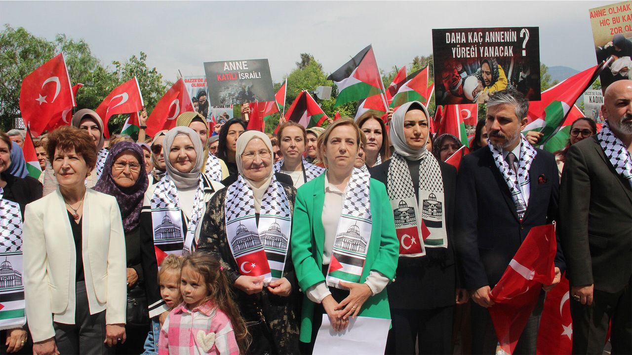 Basın açıklamasını gerçekleştiren AK Parti İzmir Kadın Kolları Başkanı Emel Dalkıran, "Pazar günü anneler günü. Günlerdir her yerde tatlı bir telaş yaşanıyor. anneler günü öksüzlerin ve evladını kaybeden annelerin de ağır imtihanı… Fakat bir yandan da dünyanın orta yerinde, yanı başımızda Filistin’de, Gazze’de, Refah’ta yaşanan soykırım nedeniyle anne olmak hiç bu kadar zor olmamıştı… Biz bugün okuldan gelecek çocuklarımızı, Gazzeli anneler ise çocuklarına verecek bir lokma ekmeği bekliyor. Bizler karışmasın diye çocuklarımızın defterlerine, kitaplarına isim yazarken, Gazzeli anneler ise cesetleri teşhis edilebilsin diye çocuklarının kollarına isim yazıyor. Bir kadın, bir anne olarak çok net ifade ediyorum: her can tek, her can biricik ve 'bir cana kıyan tüm insanlığa kıymış gibidir'. Filistin Sağlık Bakanlığının 5 Mayıs’ta yaptığı açıklamaya göre; İsrail'in 7 Ekim'den bu yana Gazze Şeridi'ne düzenlediği saldırılarda 34 bin 683 kişi öldü, 78 bin 18 kişi yaralandı.Birleşmiş milletler kadın biriminin raporuna göre Gazze’de 9 bin kadın öldü. Günde ortalama 63 kadın hâlâ ölüyor ve bunların 37’si ise anne.Kayıp ve akıbeti bilinmeyen kadınların sayısı 2 bin 100. Peki ya sağ kalan ve yaşam savaşını sürdürmeye, çocukları için hayata tutunmaya çalışan kadınlar, anneler! Filistin’de sağlık sisteminin çökmesi nedeniyle yaklaşık 60 bin hamile kadın risk altında. her gün 180 anne ölümle burun buruna doğum yapıyor. Ne diyordu gazzeli anne? 'Ben 6 çocuk doğurmakla yükümlüyüm. çünkü 2’sini israil öldürücek, 2’si eve ekmek getirmek için çalışacak, 2’si de okusun ki ülke için işe yarasın.' Ya anne olduğunu göremeden, karnında bebeği ile ölen kadınlar, ölen annesinin bedeninden ameliyatla alınan bebekler… Zor şartlar, ölümle burun buruna yaşamak ve yetersiz beslenme nedeniyle erken doğum yapan, sütü kesilen anneler… Gazze’deki her 5 kadından 4’ü, aile bireylerinden en az birinin üst üste iki öğün yiyemediğini ifade ediyor. Çocuklar, annelerinin gözü önünde eriyor.