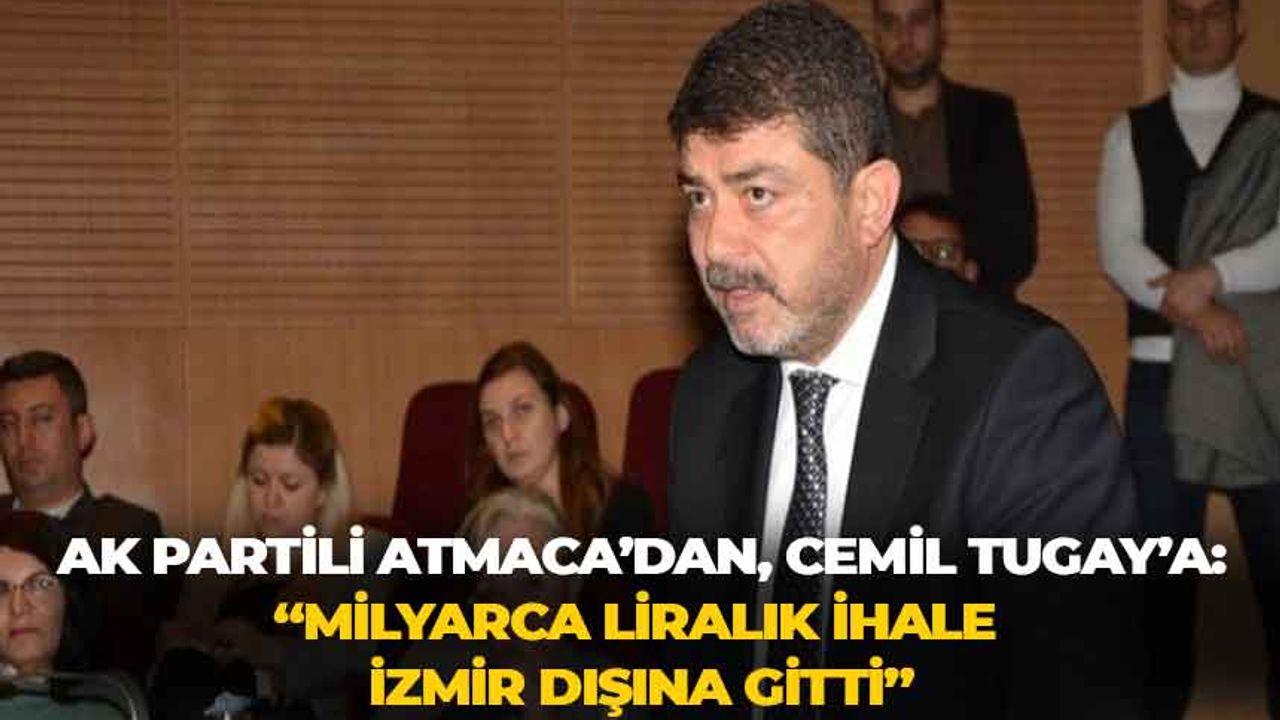 Cemil Tugay’ın göreve geldiği günden beri İzmir Büyükşehir Belediyesi ve İZSU üzerinden yapılan ihalelerin büyük bir çoğunluğunun İzmir dışındaki firmalara verildiğini vurgulayan AK Partili Uğur İnan Atmaca, “Göreve geldiğiniz günden bugüne kadar gerek İzmir Büyükşehir Belediyesi gerek İZSU gerekse şirketler üzerinden pazarlık usulü veya istisnai kapsamda milyarlarca liralık ihale İzmir dışındaki firmalara verildi.
