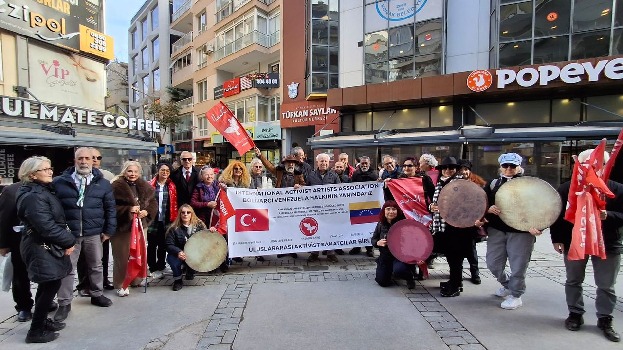 Son Mühür / Yağmur Daştan - Merkezi İzmir’de bulunan, bütün sanat disiplinlerini kapsayan ve 35 ülkede temsilciliği bulunan Uluslararası Aktivist Sanatçılar Birliği Kıbrıs Şehitleri Caddesi’nde toplanarak bağımsız Venezuela’nın seçilmiş Devlet Başkanı Nikolas Maduro’ya karşı gerçekleştirdiği saldırıyı kınayan basın toplantısı gerçekleştirdi.