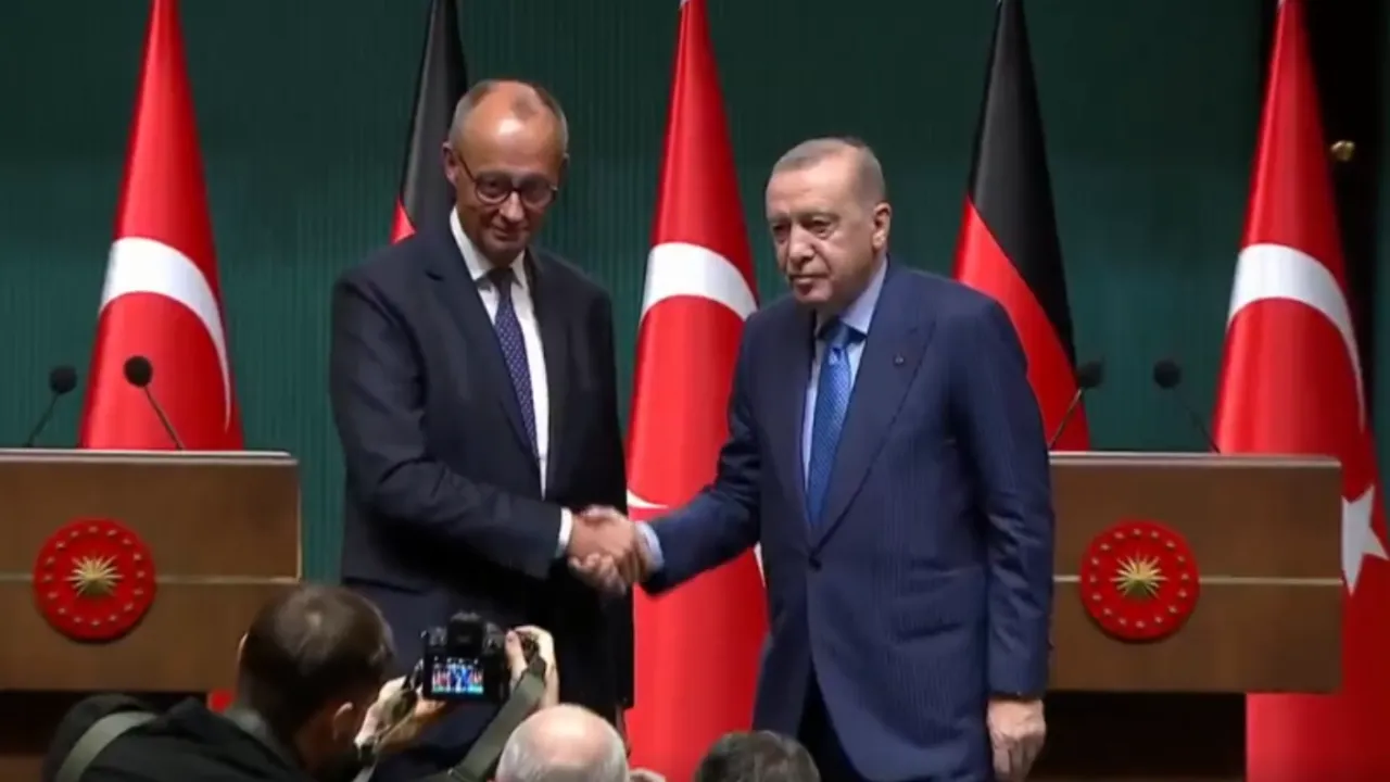 Son Mühür- Cumhurbaşkanı Erdoğan, Almanya Başbakanı Friedrich Merz’i Cumhurbaşkanlığı Külliyesi’nde kabul etti. İkili görüşmenin ardından gerçekleştirilen basın toplantısında iki ülke ilişkileri ve küresel gündem öne çıktı.