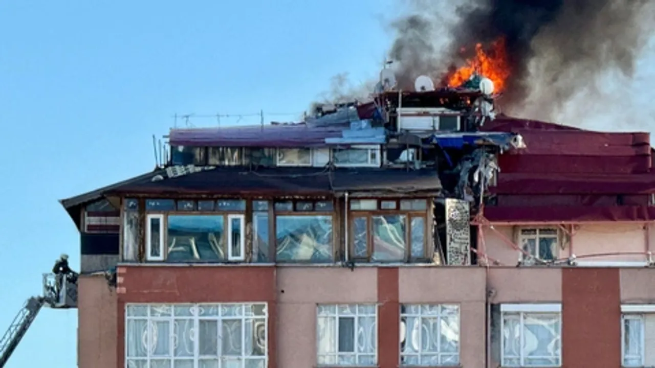 Ankara'nın Çankaya ilçesinde 7 katlı apartmanın çatısında çıkan yangında 4 kişi dumandan etkilendi. Eti Mahallesi Gazi Mustafa Kemal Bulvarı'ndaki apartmanın çatısında, henüz belirlenemeyen nedenle yangın çıktı. Rüzgarın etkisiyle kısa sürede büyüyen yangın, ihbar üzerine olay yerine gelen itfaiye ekiplerinin müdahalesiyle kontrol altına alındı. Ancak itfaiye ekiplerinin soğutma çalışması sırasında rüzgarın da etkisiyle çatıda bulunan araç lastikleri tutuştu. Yeniden başlayan yangın sırasında dumandan etkilenen 4 kişi ambulansta tedavi edildi. Bu arada çevrede güvenlik önlemi alan polis ekipleri, Kızılay ile Gazi Mustafa Kemal Bulvarı istikametini tek yönlü trafiğe kapattı.