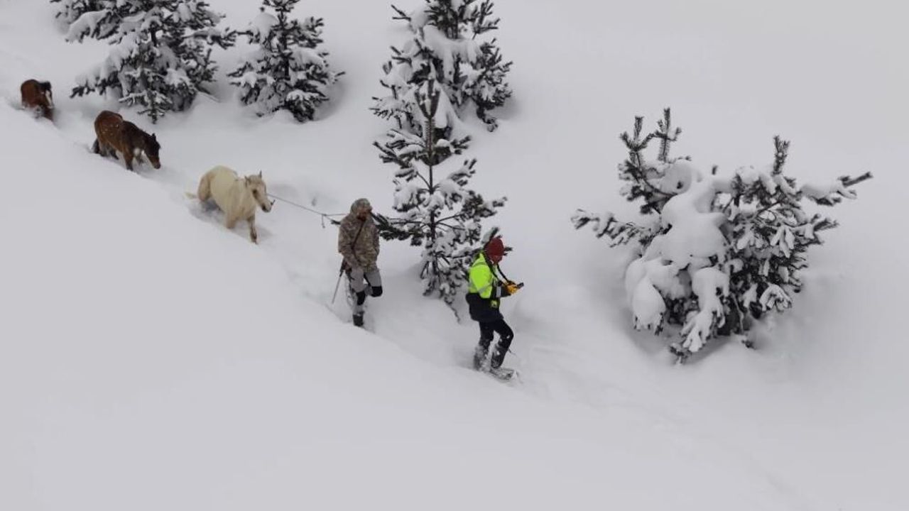Yapılan keşif sırasında atların karla kaplı kışlada bulunan bir yayla evinin çevresinde olduğu tespit edildi. Görüntülerde hayvanların yoğun karla kaplı bölgede sığınacak bir alan arayarak hayatta kalmaya çalıştıkları görüldü.