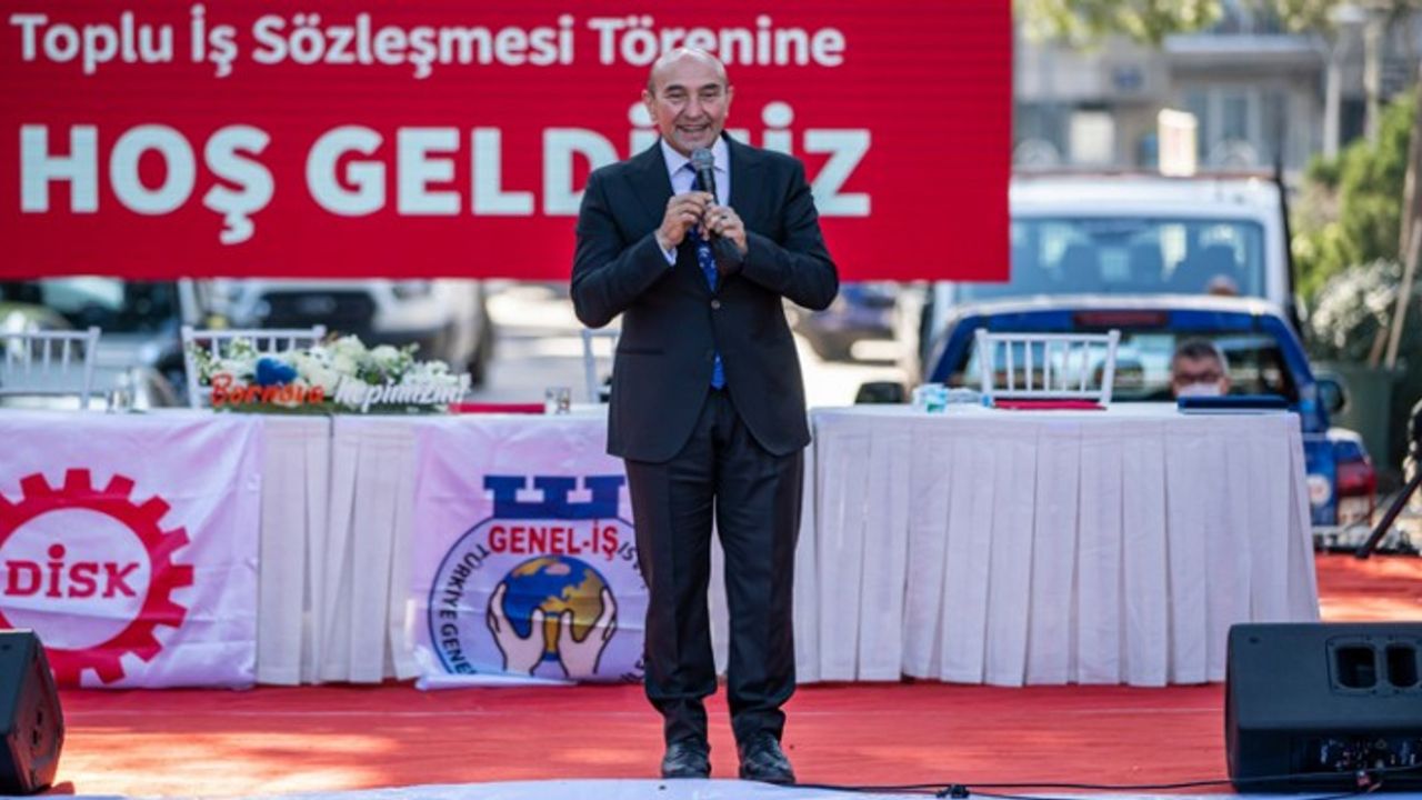 İzmir Büyükşehir Belediye Başkanı ve SODEMSEN (Sosyal Demokrat Kamu İşverenleri Sendikası) Yönetim Kurulu Başkanı Tunç Soyer, Bornova Belediyesi ile DİSK'e bağlı Genel İş Sendikası 7 No'lu Şube arasında imzalanan toplu iş sözleşmesi törenine katıldı. Bin 535 işçiyi kapsayan toplu iş sözleşmesi sonrası Bornova Belediyesi'nde asgari ücret 5 bin 890 TL oldu.