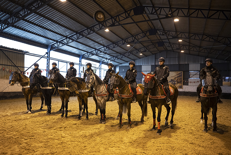 Atlı polislerin kullandığı atlara, günde en az yarım saat antrenman yaptırılıyor ve sağlık durumları yakından takip ediliyor. Sağlığında problem görülen atlar klinik tedaviye alınıyor. Atların bakımları ve temizliği de yine bu merkezde özenle yapılıyor.