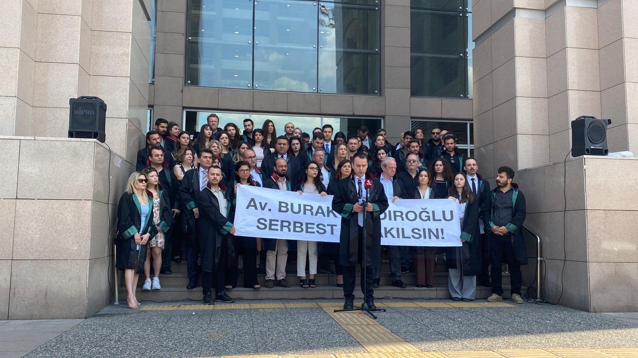 Son Mühür/ Beste Temel- Çağlayan Adliyesi önünde toplanan avukatlar, meslektaşları Burak Saldıroğlu'nun tutukluluğunun hukuki değil, siyasi bir karar olduğunu belirterek Adalet Bakanlığı'na sert çağrıda bulundu. Saldıroğlu, ana muhalefetin cumhurbaşkanı adayı Ekrem İmamoğlu'nun sosyal medya paylaşımlarının basılı kopyalarını sokaklarda dağıtması ve bu eylemi sosyal medya hesabından duyurması sonrası başlatılan soruşturma ile tutuklanmıştı.