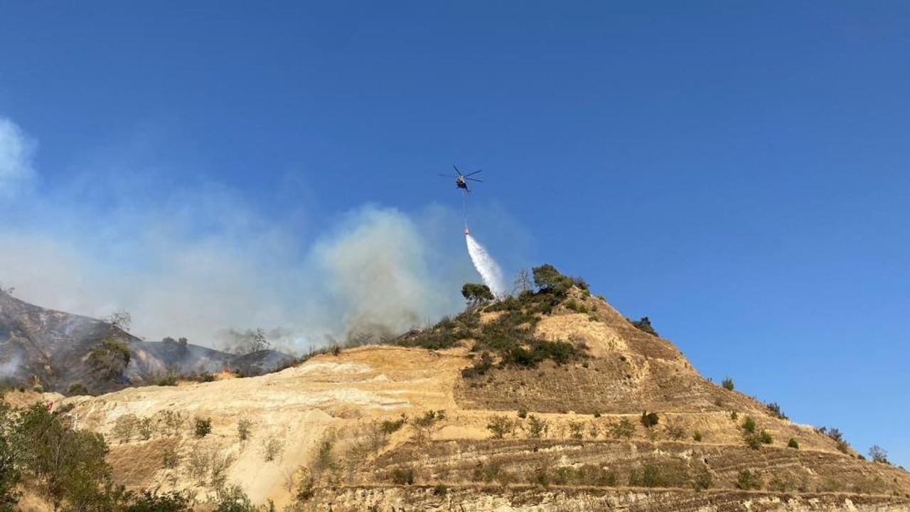 Yangına helikopterlerle havadan su atılırken, karadan da arazözler, TOMA’lar ve itfaiye araçlarıyla alevlere müdahale ediliyor. Rüzgârın etkisiyle büyüme riski bulunan yangını söndürmek için ekipler yoğun çaba gösteriyor.