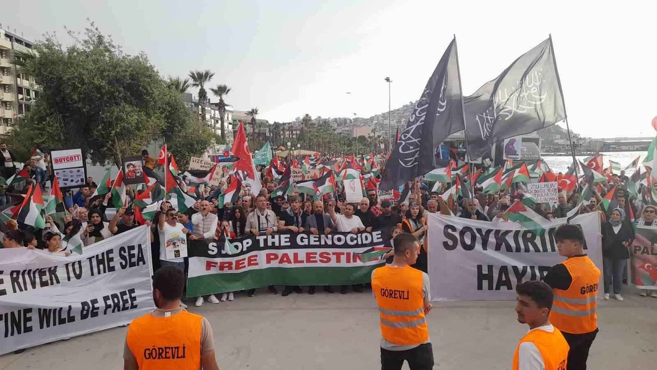 Aydın Kuşadası'nda yoğun katılımlı Filistin’e destek yürüyüşü gerçekleştirildi. Filistin'e destek amacıyla bir araya gelen Kuşadası halkı; "Gazze yalnız değil", "Özgür Filistin" yazılı pankartlarla ve Filistin bayraklarıyla yürüyüş gerçekleştirdiler. İsrail aleyhine sloganlar atılarak devam eden yürüyüş, El Heykeli önünde gerçekleştirilen basın açıklamasıyla beraber sonlandı.