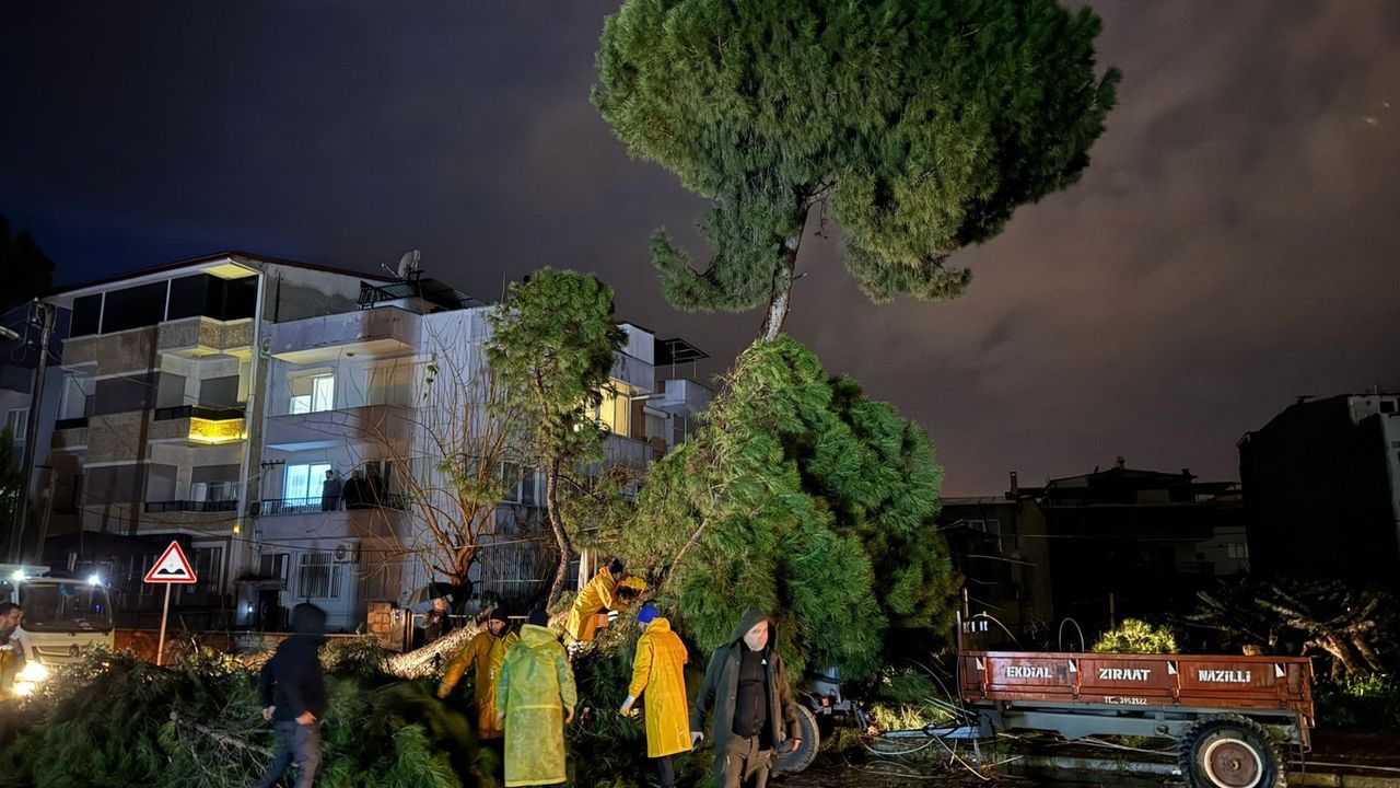 Aydın’ın Nazilli ilçesinde akşam saatlerinde aniden bastıran ve hızını artıran şiddetli rüzgar, bölgede günlük yaşamı sekteye uğrattı. Olumsuz hava koşullarının etkisiyle kentin farklı noktalarında hareketli dakikalar yaşanırken, fırtınanın en net hissedildiği yerlerden biri Şirinevler Mahallesi oldu. Meteorolojik uyarıların ardından gelen fırtına, ağaçların devrilmesine ve altyapıda hasar oluşmasına yol açtı.