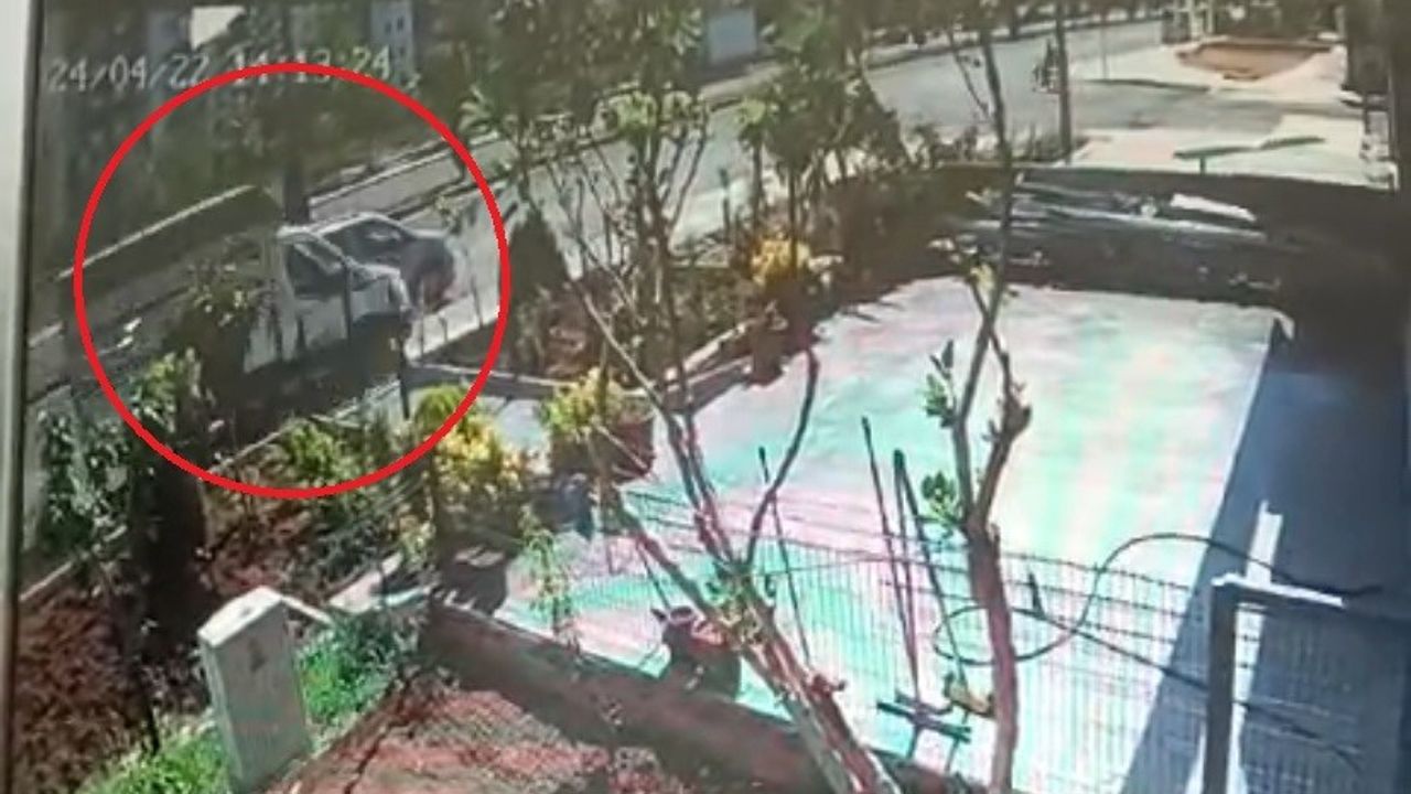 Dün, Bağcılar Mahallesi Nevruz Caddesi 1173'üncü Sokak'ta sürücüsünün kontrolünden çıkan kamyonet, önce kaldırım üzerinde park halinde olan aracı, daha sonra Emir Furkan K.'yi (13) teğet geçti. Dershaneye giden öğrencinin ölümden döndüğü anlar güvenlik kamerasınca anbean kaydedildi. Kamyonet sürücüsü, olay yerinde durmadan hızla uzaklaştı.