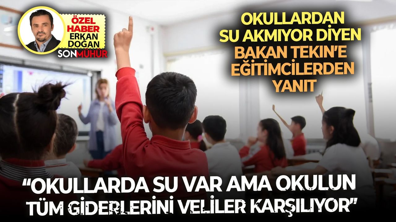 Son Mühür / Erkan Doğan - Milli Eğitim Bakanı Yusuf Tekin’in “İzmir’in okullarında tuvaletlerde sabun var ama çeşmelerinden su akmıyor” çıkışına İzmirli eğitimciler yanıt verdi. İzmirli eğitimciler, “Okullarda su var ancak, okulların tüm ihtiyaçları velilerin bağışlarıyla karşılanıyor. Su alacak parası olmayan çocuklar, tuvaletten su içiyor” dedi.