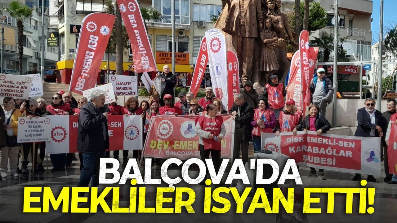 Emeklilerin ciddi geçim sıkıntısı çektiğini vurgulayan Dev Emekli Sen Balçova Şube Başkanı Sabri Karlı, "Emeğimizin, geleceğimizin peşindeyiz. Ülkemizin yanı başında ABD ve İsrail'in, İran'a saldırılarını kınıyoruz. Bu haksız kirli savaşın parçası olmayacağımızı buradan haykırıyoruz. Ülkemizde biz emekliler her geçen gün yoksullaşırken servetlerini büyütenler var, sağlık hakkını çetelere peşkeş çekenler var. Patronların çarkı dönsün diye katledilen torunlarımız, çocuklarımız var.