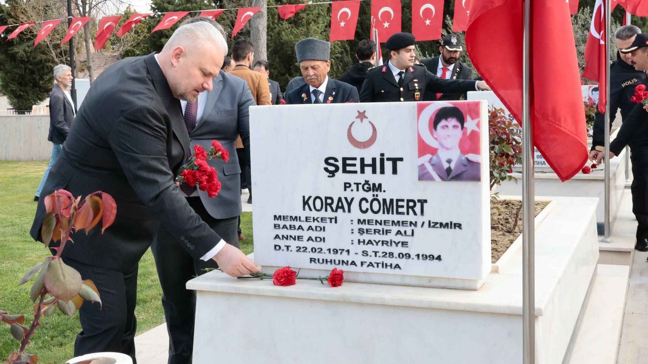 Resmi törende, Türkiye Harp Malulü Gaziler, Şehit, Dul ve Yetimleri Derneği Menemen Temsilcisi Fatih Aslan, günün anlamına dair bir konuşma yaparak, şehitlerimizin kahramanlıklarını ve fedakârlıklarını vurguladı. Ardından okunan dualarla birlikte şehitlerin mezarlarına karanfil bırakıldı.