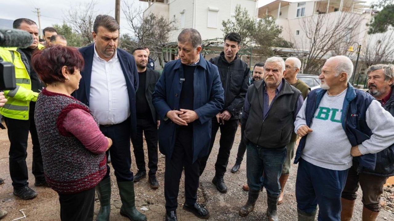 Son Mühür/ Seçil Ünlü- İzmir genelinde etkisini gösteren ve yaşamı olumsuz etkileyen şiddetli yağışların ardından İzmir Büyükşehir Belediye Başkanı Dr. Cemil Tugay, sel ve su baskınlarından etkilenen Seferihisar ilçesinde kapsamlı bir saha turu gerçekleştirdi. Afetin izlerini yerinde görmek ve vatandaşların taleplerini dinlemek amacıyla bölgeye giden Başkan Tugay, Büyükşehir Belediyesi’nin tüm imkanlarının seferber edildiğini vurguladı. Seferihisar Belediye Başkanı İsmail Yetişkin ile bir araya gelerek kriz yönetimi toplantısı gerçekleştiren Tugay, ilçedeki mevcut hasar tablosu hakkında detaylı rapor aldı.