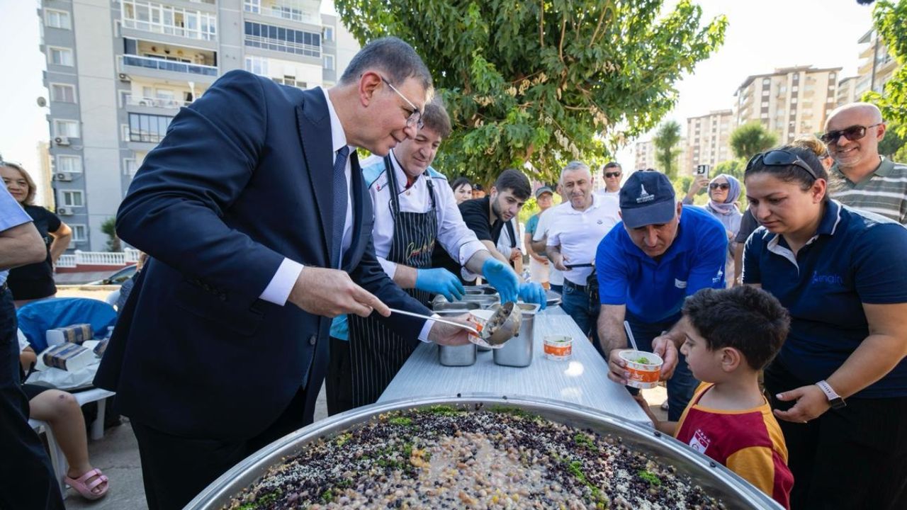 Son Mühür/Beste Temel- İzmir Büyükşehir Belediye Başkanı Dr. Cemil Tugay, Muharrem ayı münasebetiyle Karşıyaka Mustafa Kemal Mahallesi'nde düzenlenen geleneksel aşure etkinliğine katıldı. Başkan Tugay, burada yaptığı konuşmada birlik ve beraberliğin önemine vurgu yaparak, içinde bulunulan zorlu günlere rağmen mücadele azimlerinin tam olduğunu belirtti. Mustafa Kemal Mahallesi sakinleri, Karşıyaka ve tüm İzmir halkının mücadeleyi asla bırakmayacağını dile getiren Tugay, bu anlamlı günde vatandaşlarla bir araya gelerek dayanışma ruhunu pekiştirdi.