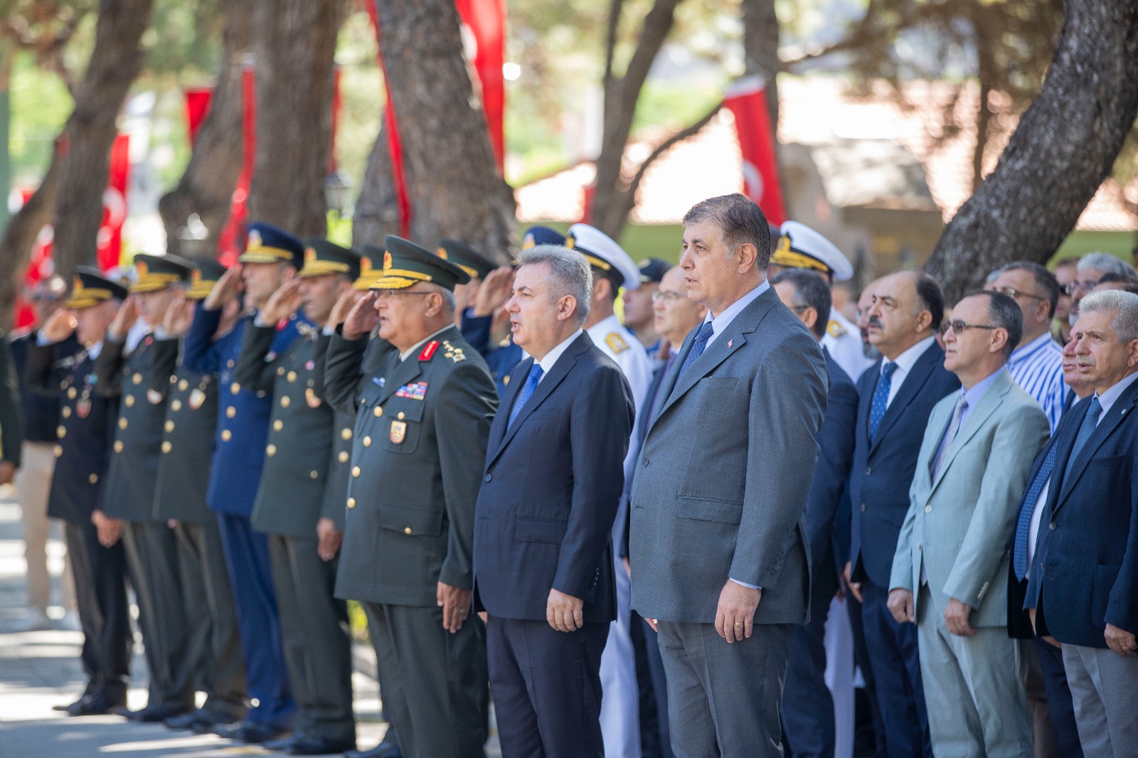İzmir Büyükşehir Belediye Başkanı Dr. Cemil Tugay, 15 Temmuz Demokrasi ve Milli Birlik Günü nedeniyle İzmir Valiliği tarafından Kadifekale Şehitliği'nde düzenlenen anma programına katıldı. Törene Başkan Dr. Cemil Tugay’ın yanı sıra İzmir Valisi Dr. Süleyman Elban, Ege Ordusu ve Garnizon Komutanı Orgeneral Kemal Yeni, İzmir İl Emniyet Müdürü Celal Sel, siyasi partilerin ve sivil toplum kuruluşlarının temsilcileri, rektörler, büyükelçiler ve şehit yakınları katıldı. Saygı duruşunda bulunulması ve İstiklal Marşı'nın okunmasının ardından şehitler için dua edildi. Duaların ardından Başkan Tugay, şehitlerin kabrine kırmızı karanfil bıraktı.
