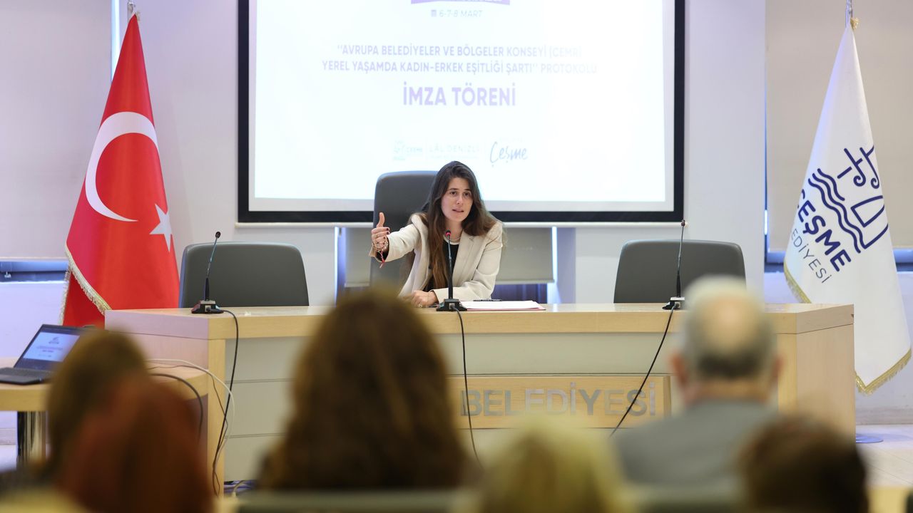 Avrupa Belediyeler ve Bölgeler Konseyi’nin (CEMR) Yerel Yaşamda Kadın-Erkek Eşitliği Şartı Protokolü, yerel yönetimlerin, kadın ve erkekler arasında eşitliği sağlamak amacıyla atacağı adımları taahhüt ettiği bir belge. Çeşme Belediye Başkanı Lâl Denizli, bu protokole imza atarak, Çeşme’deki kadınların hayatlarını iyileştirecek projelere hız kazandırmayı ve daha fazla fırsat yaratmayı hedefliyor.