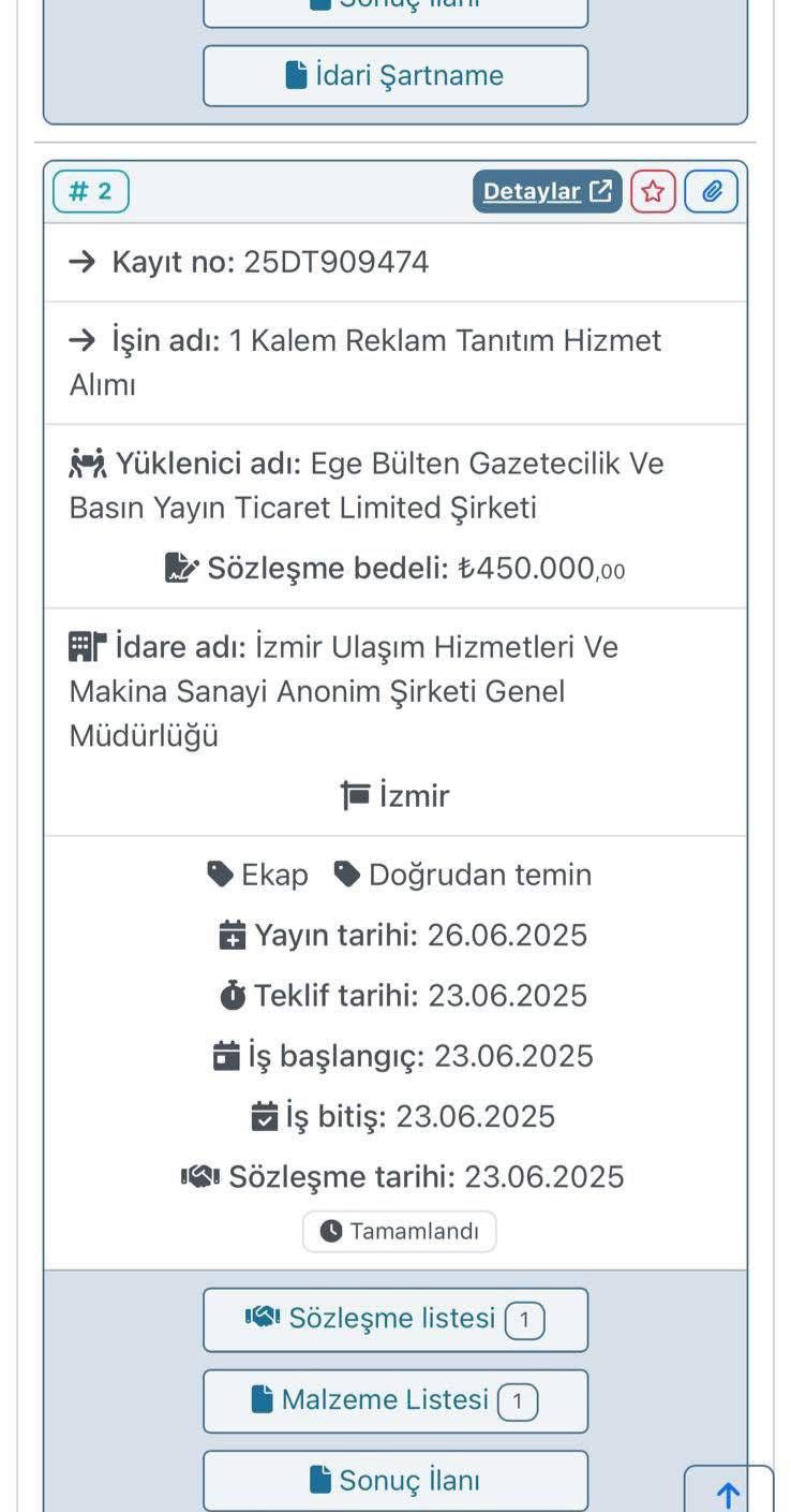 Elektronik Kamu Alım Platformu’nda (EAKP) yer alan ilana göre belediyenin ESHOT’a destek amaçlı kurulan ve ulaşım hizmetlerini yürüten İZULAŞ şirketi 23 Haziran 2025 tarihinde doğrudan temin yöntemiyle ‘1 kalem Reklam tanıtım hizmeti alımı’ gerçekleştirdi. 450 bin lira bedelli hizmet alımını Ege Bülten Gazetecilik ve Basın Yayın Ticeret Limited Şirketi kazandı. İZULAŞ, aynı gün teklifleri alırken 26 Haziran’da da ilanı yayınlattı.