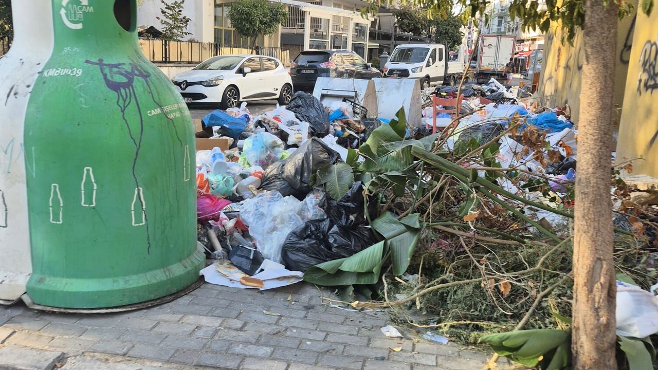 Dün akşam başlayan grevde Karşıyaka’nın pek çok mahallesinde çöp konteynerleri dolup taştı