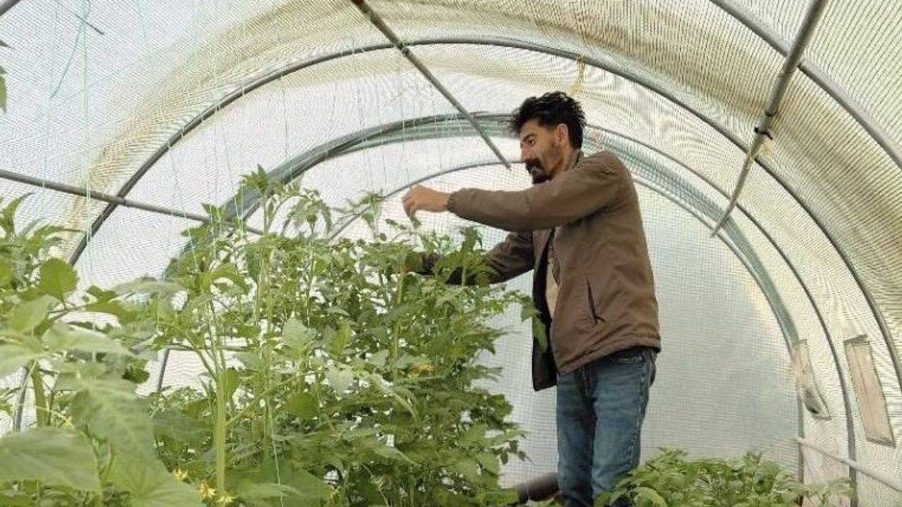 Ağrı'nın Diyadin ilçesinde berberlik yapan Turan Karip, işinden kalan zamanlarını değerlendirmek için evinin yanında kurduğu 40 metrekarelik hobi bahçesinde kimyasal madde kullanmadan sebze yetiştiriyor.