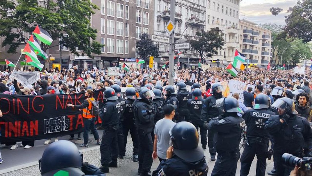 İsrail'in Gazze Şeridi'nin Refah kentindeki çadır kampları hedef alması Almanya'nın başkenti Berlin'de büyük bir yürüyüşle protesto edildi. Oranienplatz Meydanı'nda toplanan göstericiler, yürüyüş sırasında "Scholz neredesin, İsrail öldürüyor sen bakıyorsun", "İsrail terörist, ABD terörist" ve "Çocuk katili İsrail" gibi sloganlar attı.