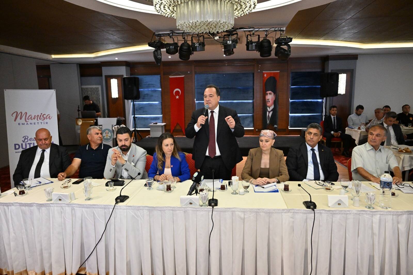 Manisa Büyükşehir Belediye Başkanı Besim Dutlulu ile Şehzadeler Belediye Başkanı Gülşah Durbay’ın ev sahipliğinde düzenlenen toplantıya CHP İl Başkanı İlksen Özalper, CHP Manisa Milletvekili Selma Aliye Kavaf, Büyükşehir Belediyesi Genel Sekreteri Burak Deste, MASKİ Genel Müdürü Talat Postacı, CHP Şehzadeler İlçe Başkanı Mert Özkösemen, Şehzadeler Muhtarlar Derneği Başkanı Hakkı Başaral ve birçok belediye bürokratı katıldı. Toplantıda yapılan çalışmalar anlatılırken, muhtarların talepleri de dinlendi.