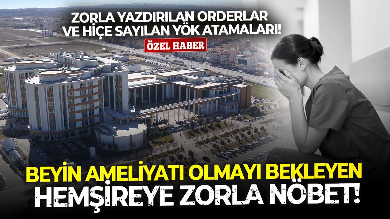 Hastaneden gelen en sarsıcı bilgi, ciddi bir nörolojik rahatsızlığı bulunan ve beyin ameliyatı olması gereken bir hemşirenin yaşadığı mağduriyet oldu. Hemşirelerin aktardığına göre, beyincik sapı sarkması teşhisi konulan ve sürekli ayakta durmaktan şikayetleri artan hemşireye, hastane yönetimi tarafından "rapor veremem" denilerek teşhis konulmaktan dahi kaçınıldı. "İdari yasak koyulmuş ve asla rapor verilmiyor" iddiası ile, fiziki sağlığına aykırı bir şekilde nöbet tutturulmaya devam edildiği ileri sürülüyor.