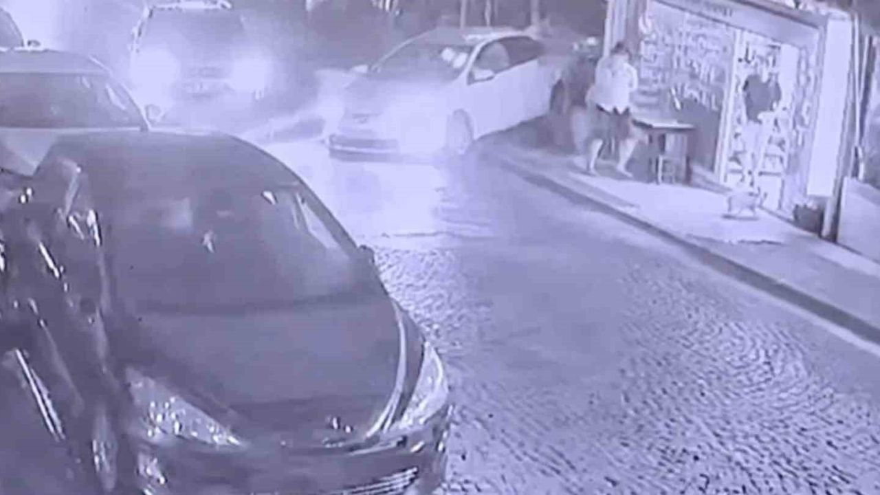 Polis ekipleri tarafından gözaltına alınan sürücünün ortalığı birbirine kattığı anlar, çevredeki güvenlik kameralarına saniye saniye yansıdı.