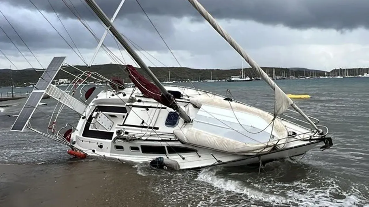 Fırtına nedeniyle Bodrum'un Turgutreis beldesinde yaklaşık 12 metre uzunluğunda bir yelkenli tekne, tonozdan koparak sürüklenmeye başladı. Şiddetli rüzgarın etkisiyle sürüklenen tekne, karaya oturdu. Olay sonrası çevredeki deniz araçları tarafından müdahale edilse de, teknenin yerinden çıkarılması için çalışmaların devam ettiği bildirildi.