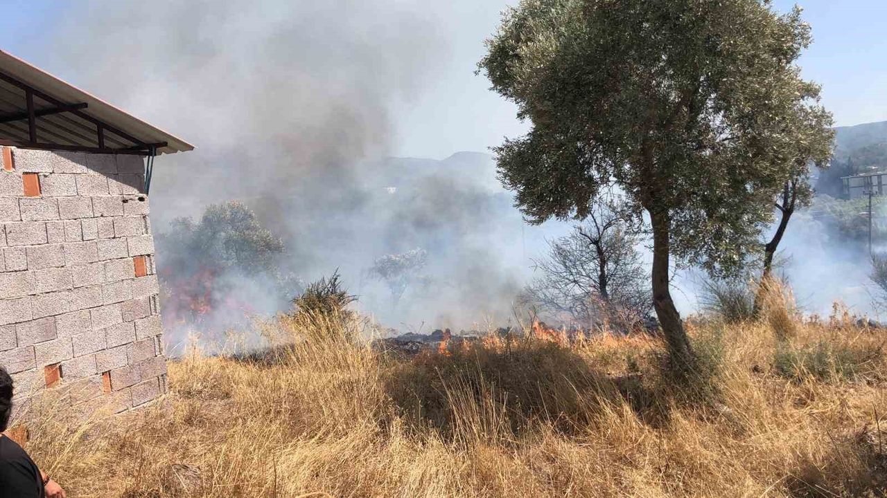 Dere yatağında bilinmeyen bir nedenle başlayan yangın, rüzgarın etkisiyle hızla büyüyerek otluk ve zeytinlik alana yayıldı. Yangın, çevredeki ikametleri de tehdit etti.