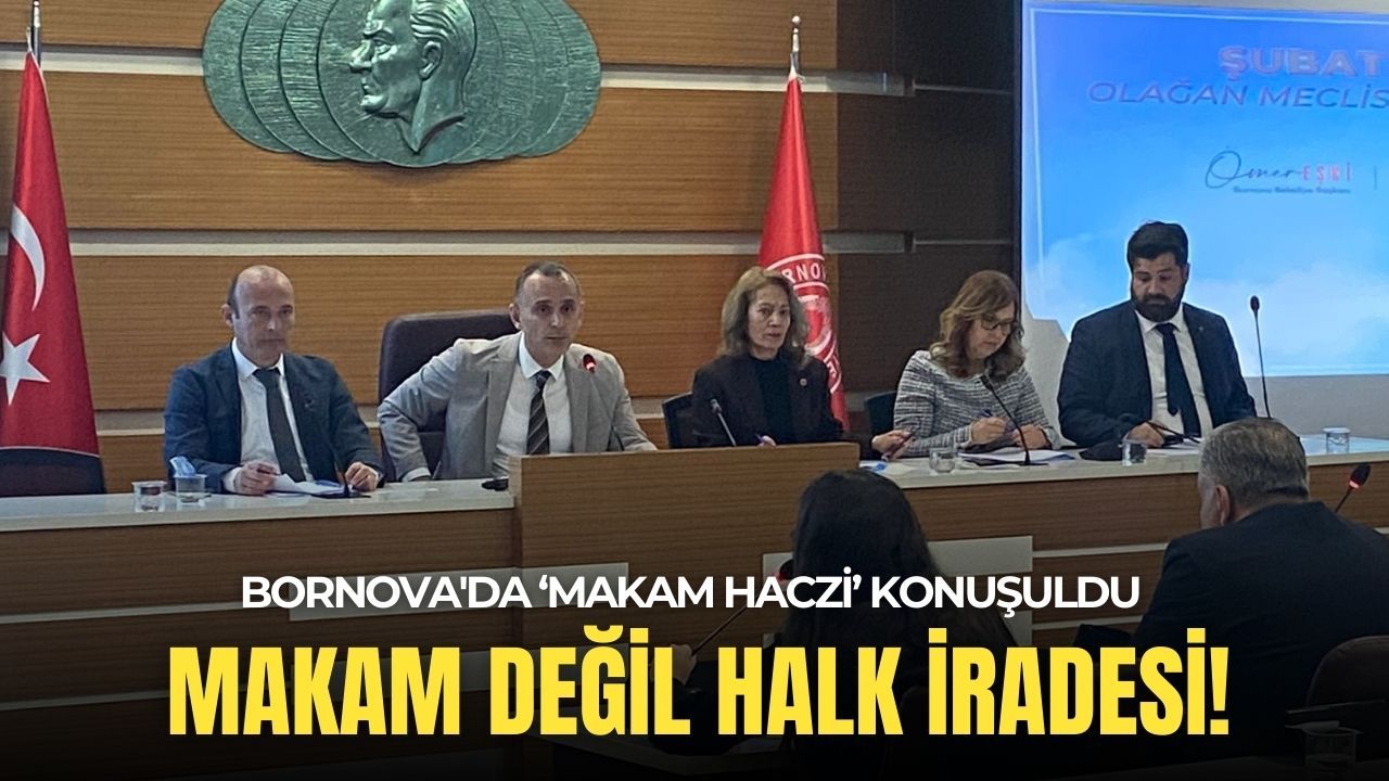 Başkan Vekili Ertürk ise, "Başkanın makamı koltuk değildir. Halkın iradesidir. Başkanın makamı herkesin yüreğidir. Bu söylemlere cevap vermedim. Bornova halkının takdirine bıraktım. Bu ifadeyi iyi niyetli olarak görmüyorum. Bornova Belediyesi'nin şu an borcu yok. Neden başkanın makamı haciz edilsin? Özellikle bunu söylüyor olmanızı iyi niyetli bulmuyorum" dedi.