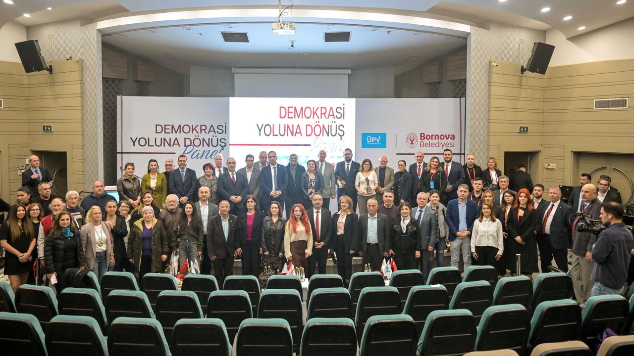 Ülke Politikaları Vakfı (ÜPV) işbirliğiyle düzenlenen panele; İstanbul Büyükşehir Belediye Başkanı Ekrem İmamoğlu’nun Başdanışmanı ve Ülke Politikaları Vakfı (ÜPV) Yönetim Kurulu Başkanı İsmail Doğan Subaşı, akademisyenler Prof. Dr. Ersin Kalaycıoğlu, Dr. Oya Yeğen, Doç. Dr. Mert Moral ve Doç. Dr. Berk Esen gibi önemli isimler konuşmacı olarak katıldı. Bornova Belediyesi Nevzat Kavalar Kültür Merkezi’nde düzenlenen ve büyük ilgi gören panel, İzmir Büyükşehir Belediye Başkanı Cemil Tugay, Bornova Belediye Başkanı Ömer Eşki, Maliye Eski Bakanı ve ÜPV’nin Kurucu Başkanı Zekeriya Temizel, Karşıyaka Belediye Başkanı Yıldız Ünsal, Kemalpaşa Belediye Başkanı Mehmet Türkmen, Bornova Belediyesi eski Başkanı ve CHP Milletvekili Prof. Dr. Kamil Okyay Sındır, İzmir Büyükşehir Belediyesi Genel Sekreteri Ramazan Tezcan, CHP Bornova İlçe Başkanı Ertürk Çapın, meclis üyeleri, akademisyenler ve hukukçuların katılımıyla gerçekleşti.