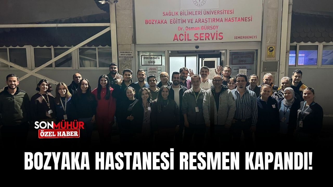 Son Mühür / Erkan Doğan - 1995 yılından beri hizmet veren Sağlık Bakanlığı’na bağlı Bozyaka Hastanesi’nin kapısına bu gece 00.00’da kilit vuruldu. Hastanenin acil servisi saat 22.30’dan itibaren hasta alımını durdurdu. Acil servis çalışanları servisin ışıklarını söndürmeden önce hatıra fotoğrafı çektirdi.