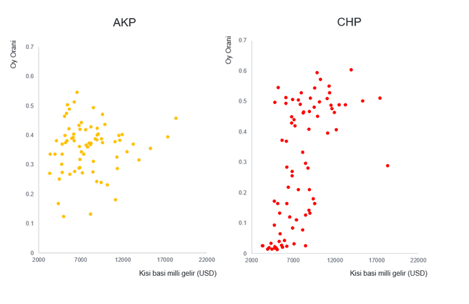 2) Kisi basina dusen gelir (USD) ve oy oranları