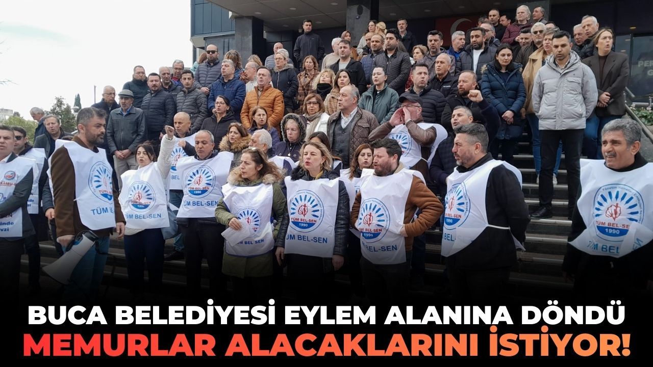 Son Mühür / Atakan Başpehlivan Son aylarda sık sık iş bırakma eylemleriyle, çeşitli iddialarla kent gündemine gelen Buca Belediyesi'nde Tüm Bel Sen'e bağlı memurlar 7 aydır TİS alacaklarının verilmemesi üzerine iş bırakarak, belediye binası önünde sloganlarla ve alkışlarla haklarının verilmesini istedi.