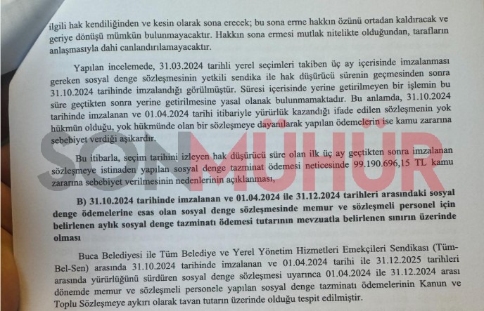 1 Nisan 2024’le, 31 Aralık 2025 tarihleri arasında geçerli olacağı karara bağlanan sözleşmenin yok hükmünde olması nedeniyle bugüne kadar memurlar ve sözleşmeli personele sözleşme kapsamında ödenen Sosyal Denge Tazminatlarının kamu zararı oluşturduğu anlaşıldı.