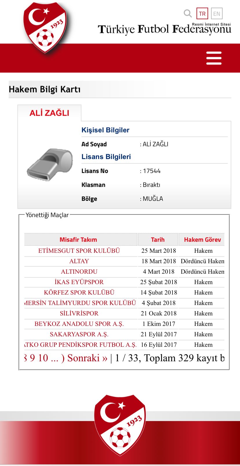 Öte yandan Zağlı'nın hakemlik yaptığı dönemde yönettiği maçlar ise şu şekilde;