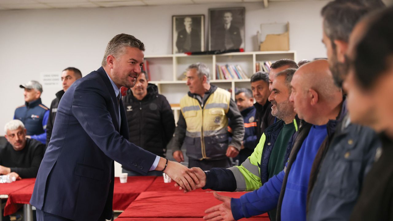Başkan Görkem Duman, Fen İşleri, Temizlik İşleri, Park ve Bahçeler ile Veteriner İşleri şantiyelerini ziyaret ederek çalışanlarla tek tek bayramlaştı.