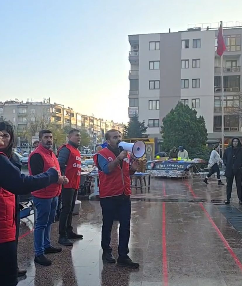 “Haktan hukuktan bahsediyorsak ilk önce o hukuku koruyacağız. Eğer söz konusu hakkımız, alacaklarımız ve 2026 yılına parasız girmemekse, herkes her şeyi anlamak ve bilmek zorunda. Eyleme gelmeyen arkadaşlarımız kendini kurtardı zannediyor. Oysa gelmeyerek bu haksızlığın ortağı oluyorlar. Hepimizin hakkına giriliyor.”