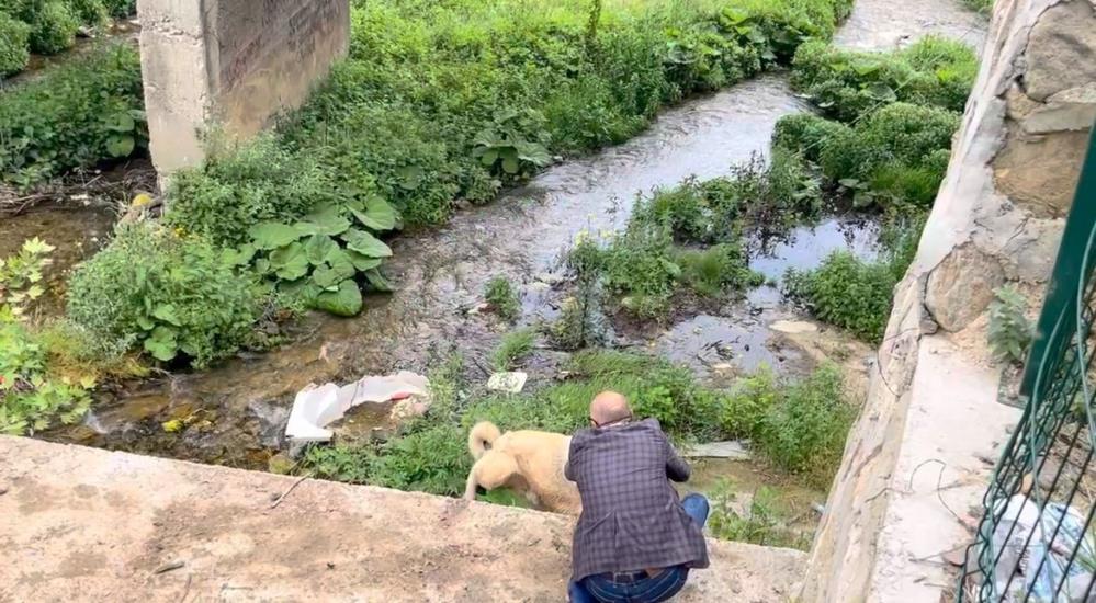 Köprüden geçmekte olan bir kişi, itfaiye ekiplerinin hazırlıklarını görüp durumu merak ederek yanlarına geldi. Ekiplerin müdahale için dereye inmek üzere hazırlık yaptığı sırada, köpeklerin sahibi tesadüfen olay yerine uğrayarak hayvanlarını gördü. Paçalarını sıvayıp dereye inen adam, köpeklerini kendi çabalarıyla kurtardı. O anlar çevredeki vatandaşlar tarafından kameralara kaydedildi.