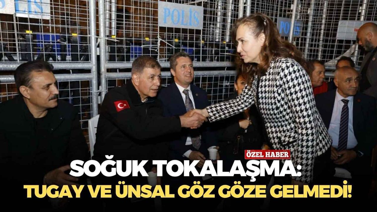 Son Mühür / Erkan Doğan - Aralarında gerginlik olan zmir Büyükşehir Belediye Başkanı Cemil Tugay ile Karşıyaka Belediye Başkanı Yıldız Ünsal, tokalaşırken yüz yüze bakmadı. Ünsal’ın Tugay’a mesafeli bir noktada oturduğu da dikkat çekti!