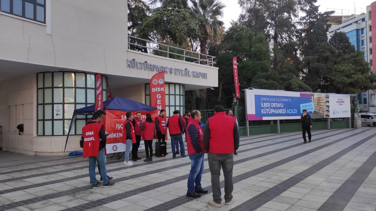 Son Mühür/ Emine Kulak- İzmir Büyükşehir Belediyesi bünyesinde faaliyet gösteren İZENERJİ, İZELMAN ve İZFAŞ’ta örgütlü Genel-İş Sendikası’nın 1, 2, 3 ve 9 No’lu şubelerine bağlı işçiler, üç aydır alamadıkları sosyal hakları için başlattıkları oturma eylemini dördüncü gününde de sürdürdü. Bugünkü eyleme, dayanışma amacıyla Genel-İş 6 No’lu Şube de katıldı.