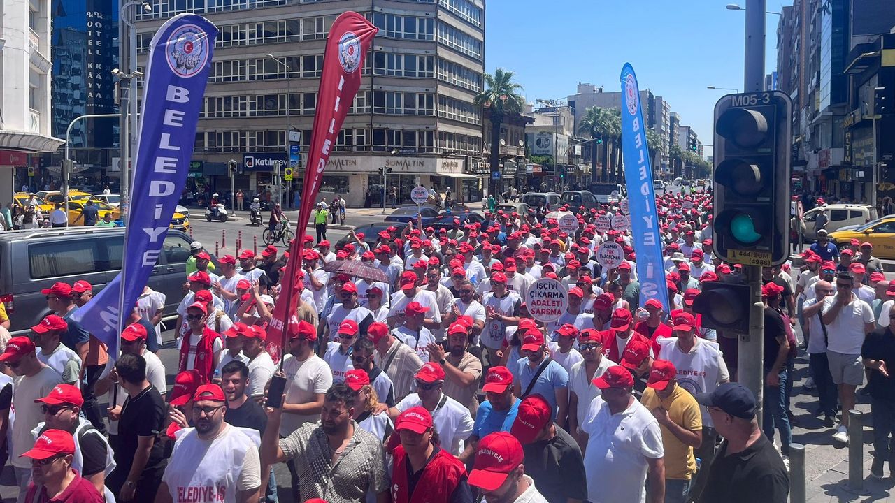 “Emek onurdur”, “İşçiyiz, haklıyız, kazanacağız” sloganları eşliğinde yapılan yürüyüşün sonunda grup, İzmir Büyükşehir Belediyesi’nin Egemenlik Binası önünde toplandı. Burada basın açıklaması yapan sendika temsilcileri, işçi kıyımına karşı mücadelelerinin süreceğini vurguladı.
