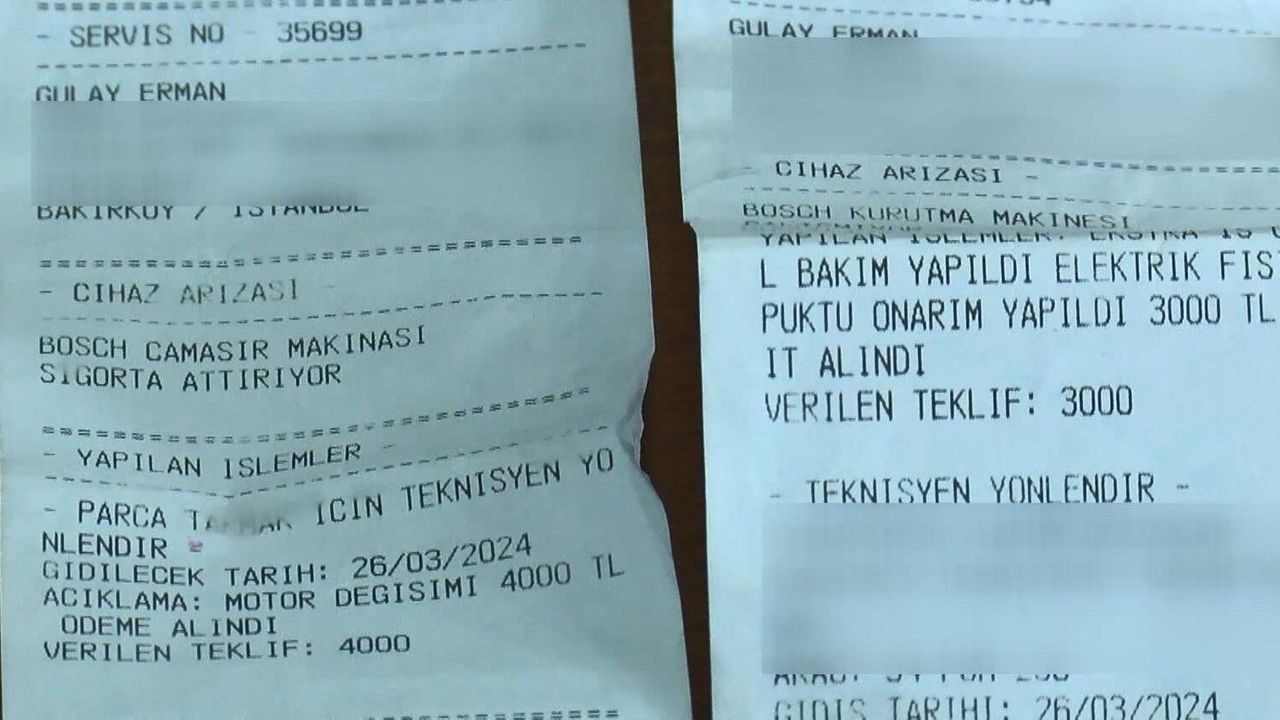 Bakırköy'de yaşayan Gülay Erman, 26 Mart'ta, çamaşır makinesinin arızalanması üzerine internetten bir tamirci buldu. İddiaya göre evine gelen tamirciler, önce çamaşır makinesinin motorunun arızalı olduğunu söyleyip 7 bin lira karşılığında yeni motor taktı. Makinenin aynı gün tekrar arızalanması üzerine Gülay Erman, firmaya telefon ederek durumu bildirdi. Aynı tamirciler ikinci kez eve gelerek, firmada tamir edilmesi gerektiğini söyleyerek çamaşır makinesini alıp götürdü. 1 aydır firmaya telefon edip makinesinin durumunu soran ve makineyi geri almak istediğini belirten Gülay Erman, henüz sonuç alamadığını ve mağduriyet yaşadığını söyledi. Evine gelip çamaşır makinesini götüren servis çalışanına cep telefonu numarası üzerinden defalarca mesaj atan Erman, çalışanın kendisini oyalayıcı nitelikte sesli ve yazılı cevaplar aldığını söyledi. Tüketici Hakem Heyeti'ne şikayette bulunan, Gülay Erman polise giderek şikayetçi oldu.